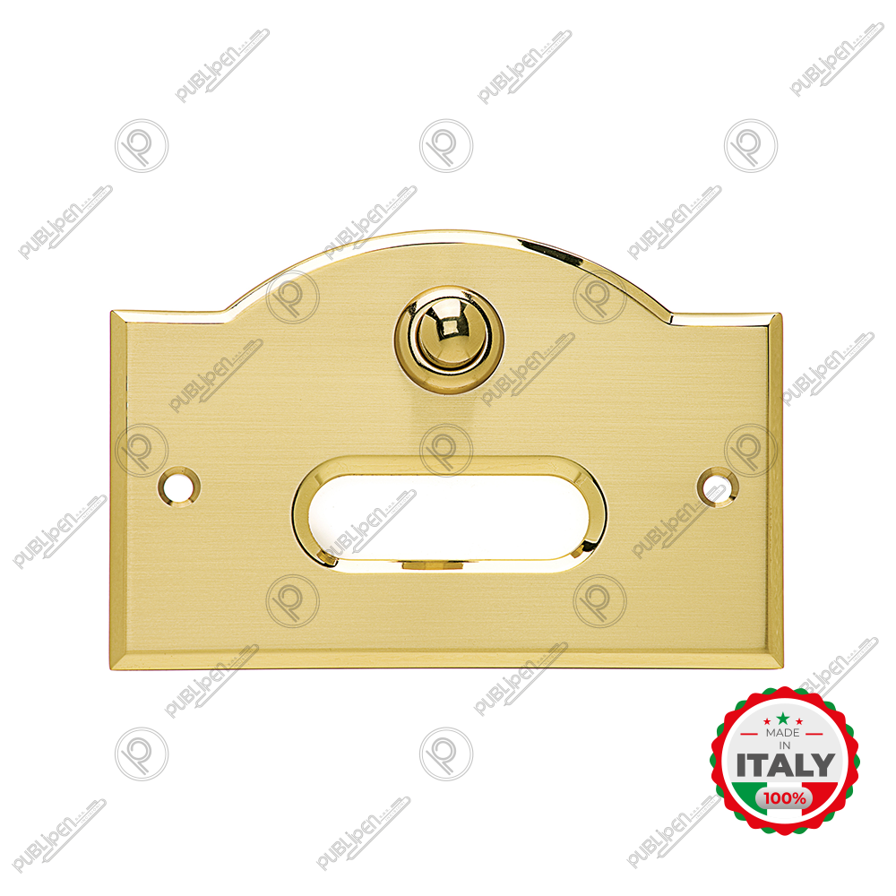 Campanello in ottone satinato con pulsante lucido e asola in opalino per incisione nomi, misura 120x80mm Spessore 3mm